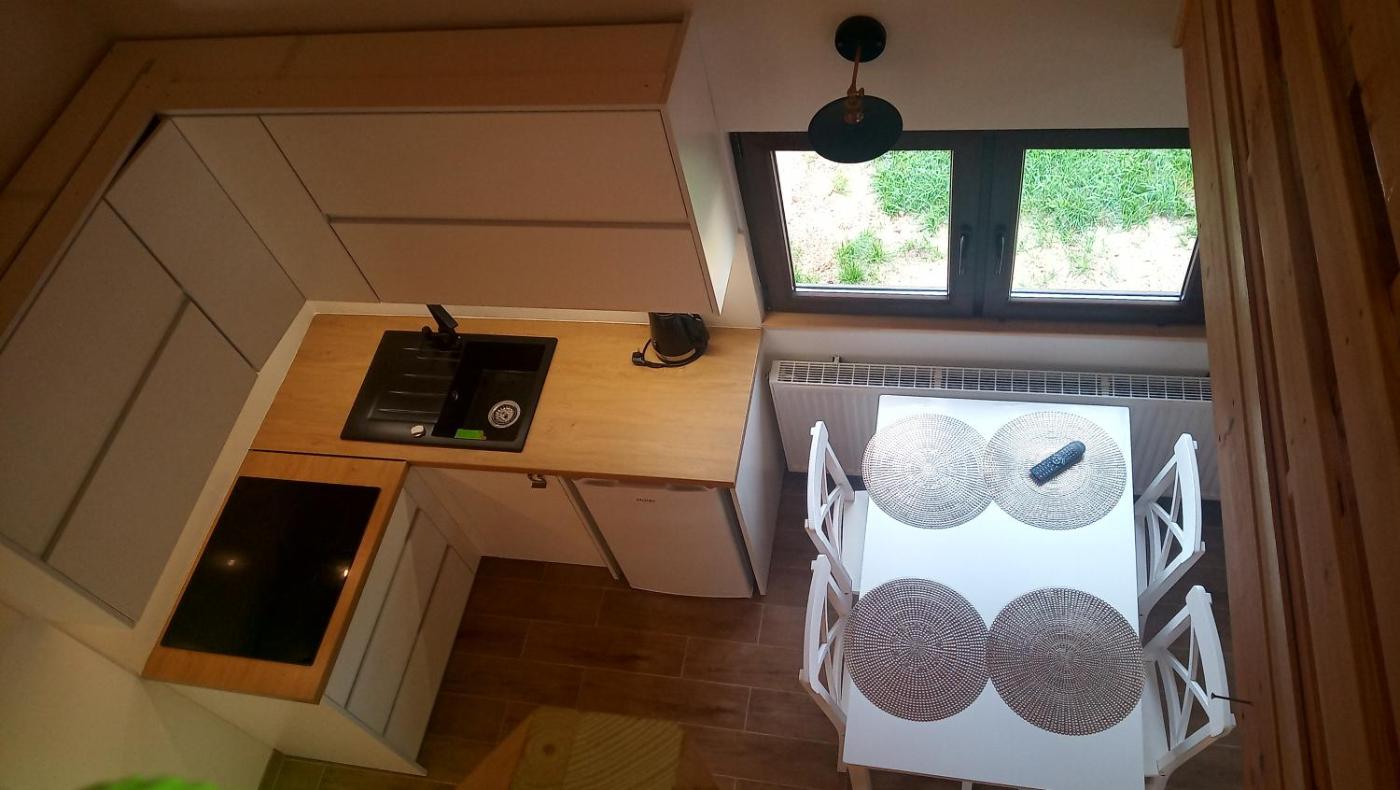 Dom z 2 sypialniami. Featuring a private entrance, this holiday home comprises 1 living room, 2 separate bedrooms and 1 bathroom with a walk-in shower and a hairdryer. Guests will find a stovetop, a refrigerator, kitchenware and a microwave in the well-equipped kitchen. The holiday home also provides guests with a barbecue. Boasting a terrace with garden views, this holiday home also provides a washing machine and a flat-screen TV. The unit offers 4 beds. Dom wakacyjny - 5 osobowy. Powierzchnia pokoju ok.: 35 mkw.