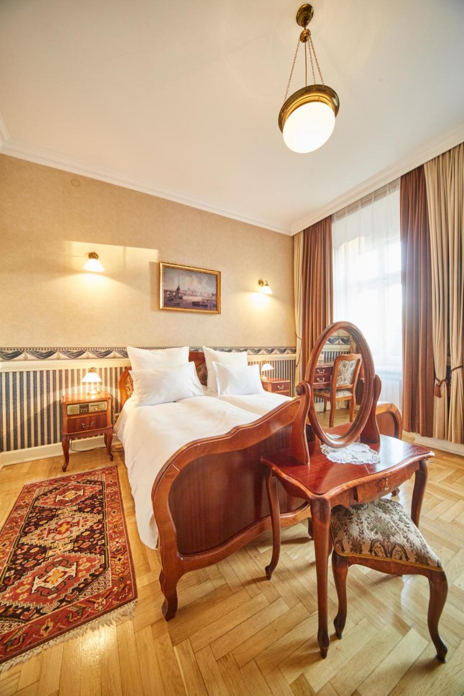 Pokój dwuosobowy typu Deluxe z klimatyzacją. Ten przestronny apartament typu suite urządzony jest w stylu secesyjnym. Goście mają do dyspozycji oddzielny salon oraz łazienkę z wanną i prysznicem. Udogodnienia obejmują lodówkę oraz szybkie Wi-Fi. Pokój Dwuosobowy - 3 osobowy. Powierzchnia pokoju ok.: 30 mkw. ;