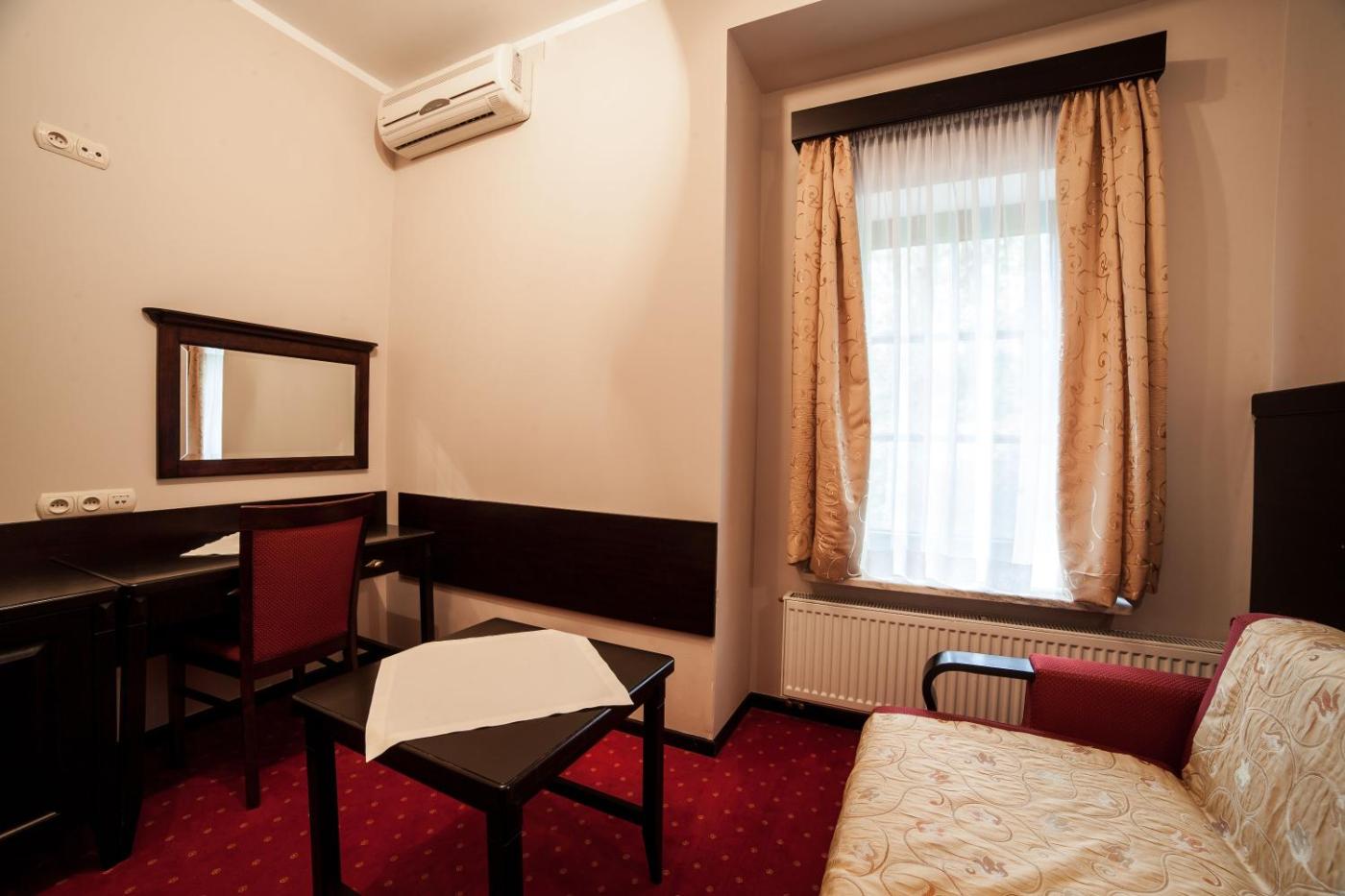 Pokój Dwuosobowy typu Classic. The double room includes a private bathroom equipped with a bath or a shower. The double room provides a flat-screen TV with satellite channels, a wardrobe, a carpeted floor, heating as well as garden views. Pokój Dwuosobowy - 2 osobowy. Powierzchnia pokoju ok.: 12 mkw. ;