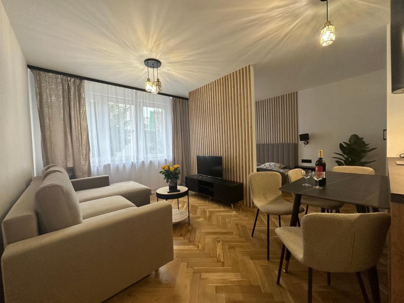 Apartament z 1 sypialnią. Boasting a private entrance, this apartment features 1 living room, 1 separate bedroom and 1 bathroom with a walk-in shower and a hairdryer. In the kitchen, guests will find a stovetop, a refrigerator, a dishwasher and kitchenware. Among the room amenities are a washing machine, a tea and coffee maker and a wardrobe as well as a quiet street view. The unit has 2 beds. Apartament - 4 osobowy. Powierzchnia pokoju ok.: 30 mkw.