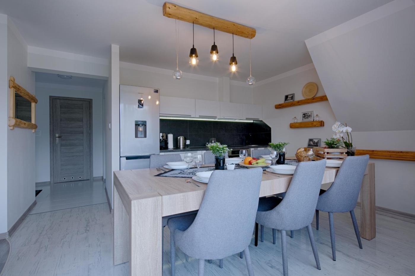 Apartament z widokiem na góry. Boasting a private entrance, this spacious apartment also features 1 living room, 1 separate bedroom and 1 bathroom with a shower. In the well-equipped kitchenette, guests will find a stovetop, a refrigerator, a dishwasher and kitchenware. Featuring a balcony with garden views, this apartment also features a tea and coffee maker and a flat-screen TV with cable channels. The unit has 3 beds. Apartament - 5 osobowy. Powierzchnia pokoju ok.: 80 mkw.